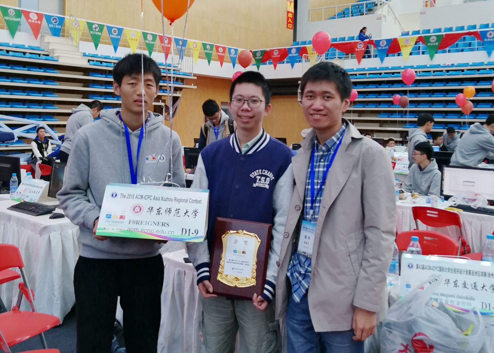 張羽戈、林方欣、周亦然在2018年ACM-ICPC亞洲區域賽徐州賽點捧得金獎
