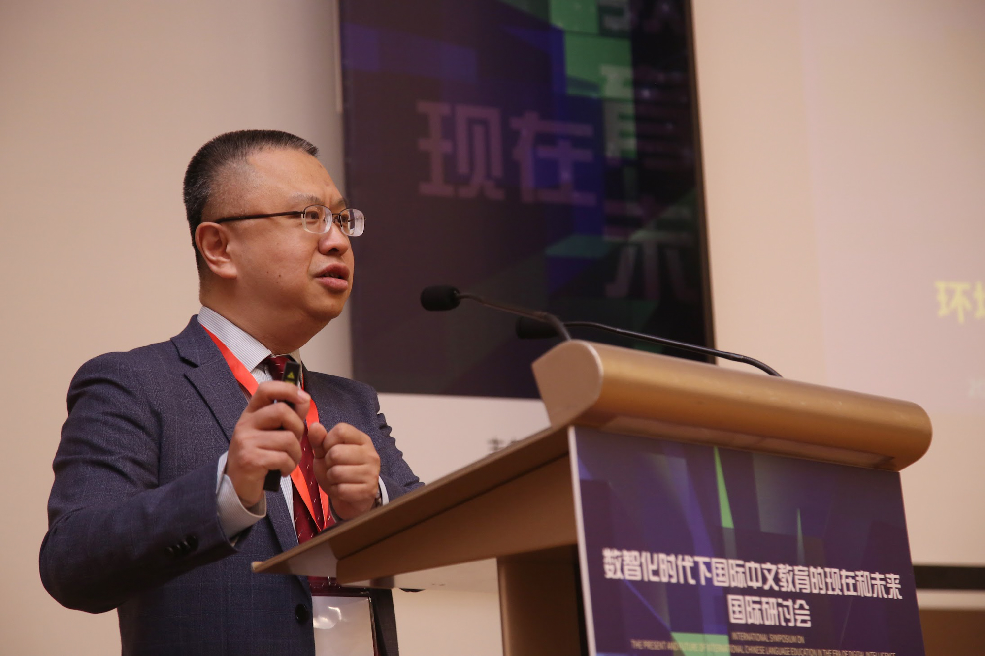會上,美國肯楊大學終身教授白建華以“美國跨文化交際能力(ICC)標準在國際中文教學中的應用”為題作主旨報告。他指出,應系統地將跨文化交際能力融入語言教學目標、教學活動和評估體系,實現文化要素與語言教學的有機融合。華東師大數據科學與工程學院院長錢衛寧在“AI賦能國際中文在線學習:挑戰與機遇”為題的主旨報告中強調,人工智能技術可以通過構建沉浸式、碎片化學習場景與智能輔助系統,有效支持個性化、大規模并行的中文教育實踐。