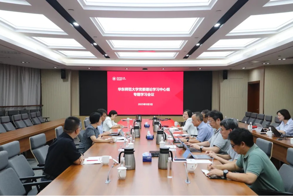 9月3日,華東師范大學召開黨委理論學習中心組學習會議,專題學習習近平總書記在紀念中國人民抗日戰爭暨世界反法西斯戰爭勝利80周年大會上的重要講話精神。校黨委書記梅兵主持會議。