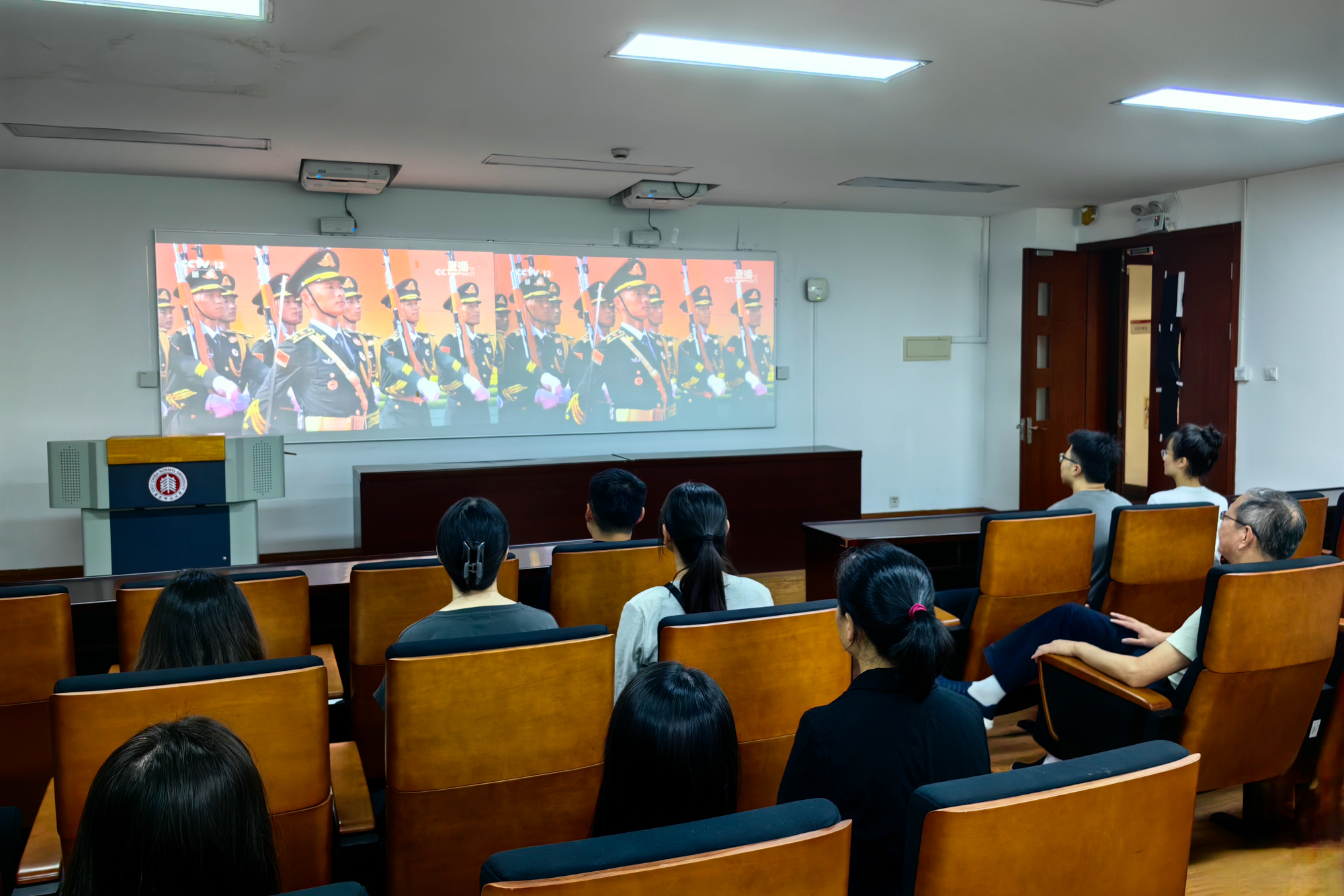 上午,華東師范大學師生集體收看紀念大會實況直播,共同見證這一莊嚴時刻。